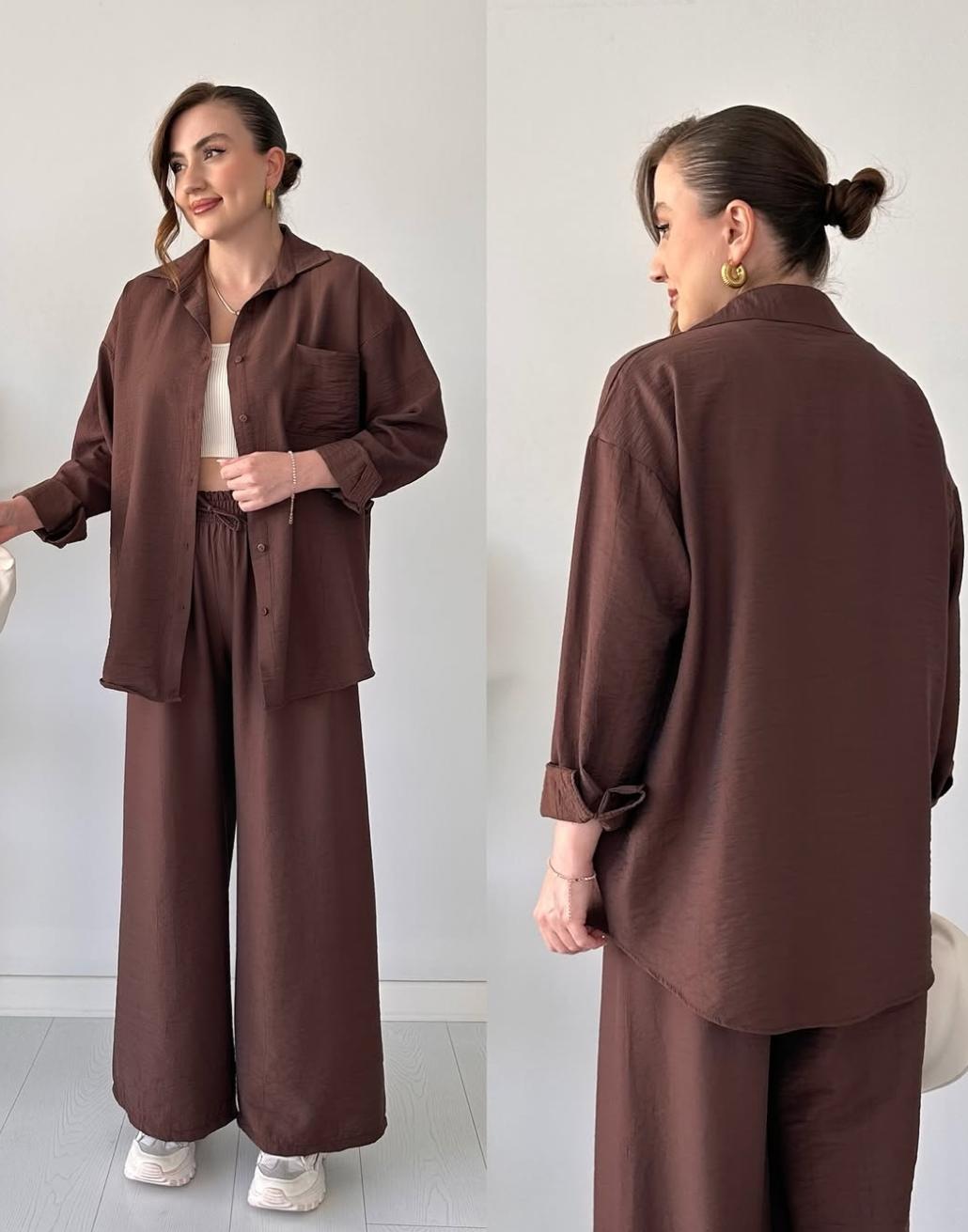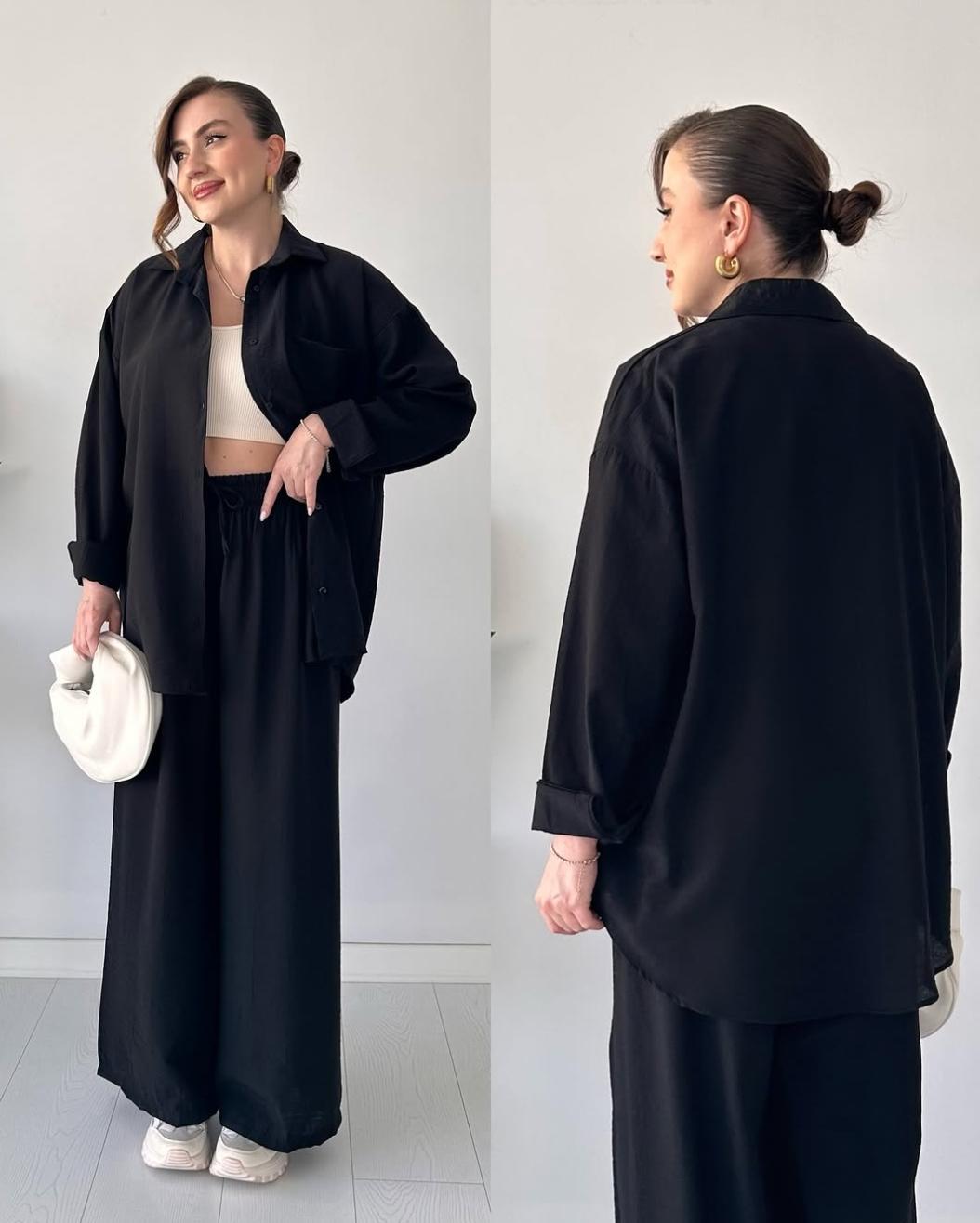 Elevate your everyday look with this effortlessly chic Shirt & Pant Set from Comfort. Designed for women who value both ease and elegance, the soft button-down shirt pairs beautifully with wide-leg black pants to give you a polished look without the extra effort.